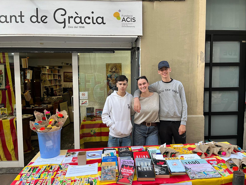 Avui, dia de Sant Jordi, el Centre de Joves i Adults ACIS col·labora amb la paradeta de la Fundació que posa la botiga l'Encant de Gràcia. A la parada, els nostres alumnes venen llibres i punts de llibre realitzats per l'alumnat de la UEC, els diners dels quals seran destinats a fer una activitat de fi de curs especial. Els alumnes de PFI també han volgut col·laborar en la venda de roses de la Fundació Nexe, per impulsar activitats de lleure adaptat per a infants amb pluridiscapacitat. I per la tarda, al Centre fem un cafè literari amb conta contes, de la ma de la voluntària Pilar Grau, per als alumnes dels Tallers de Tarda. Aquesta és una jornada enriquidora, que aporta consciència sobre la necessitat de recolzar les iniciatives socials i que, sense dubte, repetirem!
